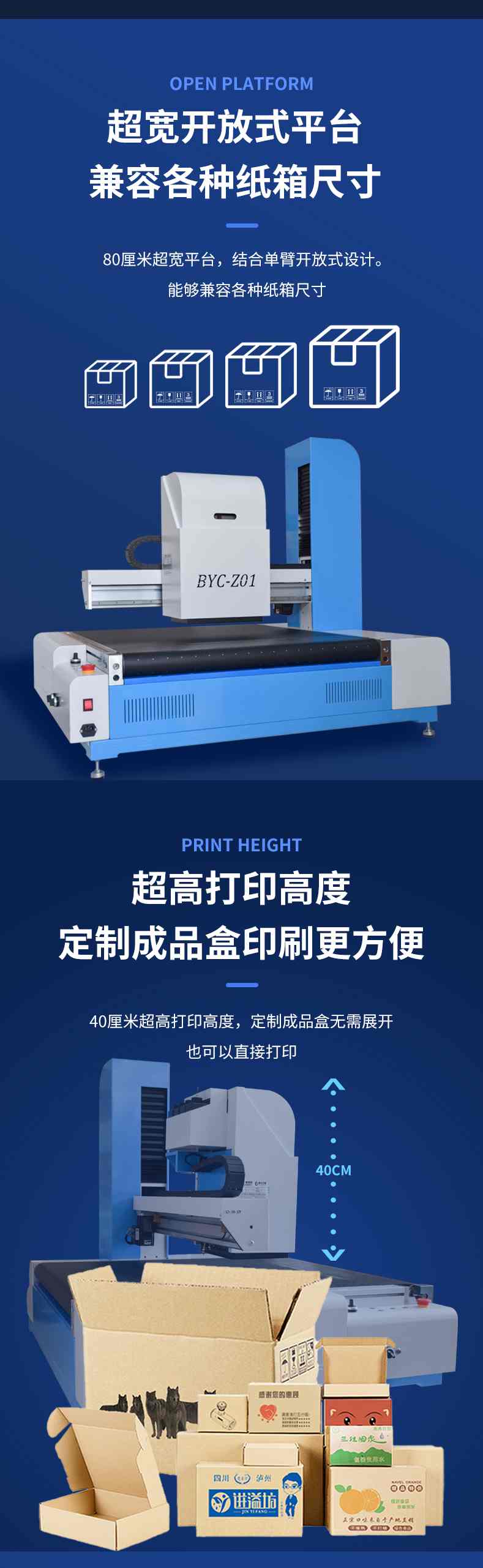 博易創瓦楞紙箱打印機,流水線高速作業,適合批量快速打印紙盒紙袋包裝盒圖案,文字,logo。